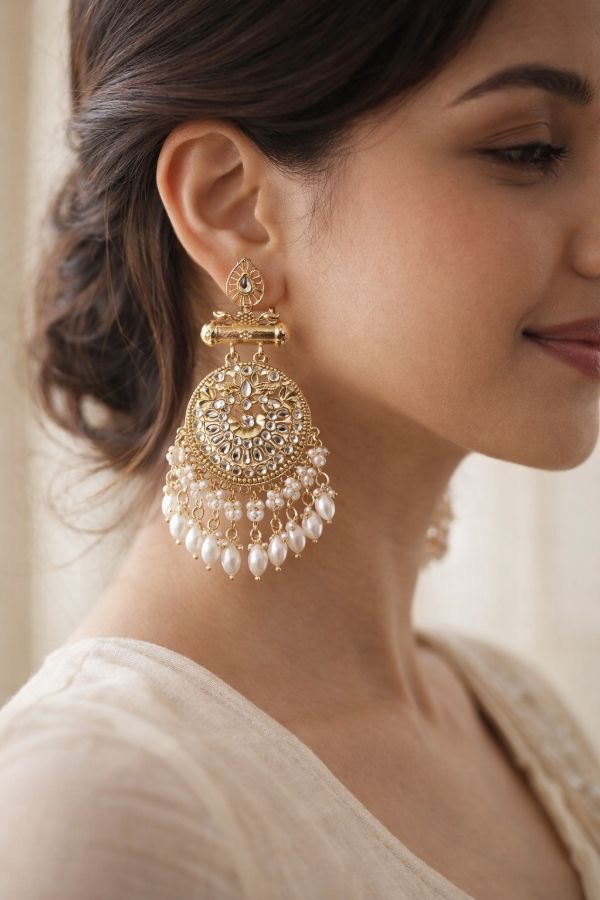 A traditional earing for wedding pairs beautifully with lehengas, sarees, and classic bridal looks.